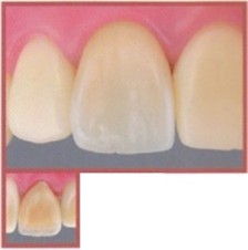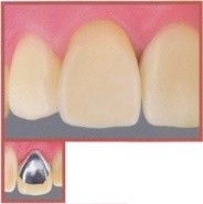 ■56%ゴールドと2%プラチナの合金に、前半分の見える部分を、陶材(セラミック)で白く見えるようにしてあります。経時的に色調の変化がなく、いつまでもきれいな艶、光沢を保ちます。ただ透明感は、内面に金属を使用する為、光の透過性はオールセラミックに劣ります。裏側は銀色の金属色となる為、上顎の歯にお勧めです。